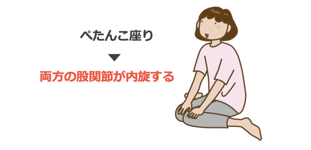 この座り方は、両脚の股関節を【内旋(内側にねじれる)】させてしまいます。