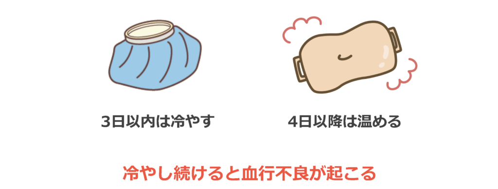 そのため、冷やすのは目安として3〜4日程度までにし、それ以降は温めて血流を促すことをおすすめします。